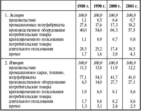 Как показывает товарная структура внешней торговли, в экспорте преобладает продукция готовых промышленных изделий, в первую очередь продукции машиностроения, которая и в импорте занимает более трети.