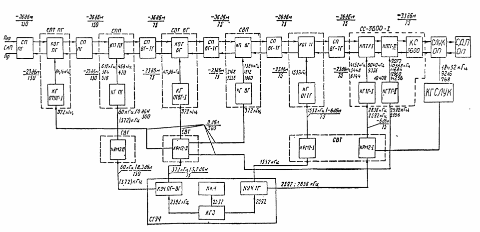Расчет диаграммы уровней заключается в определении уровней передачи. Приема на входе и выходе усилений для верхнего по частоте канала, при наиболее тяжелых условиях работы. Уровень передачи ОП-1 равен номинальному для данной системы передачи - 13 дБ.
