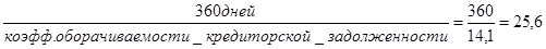 Коэффициент оборачиваемости кредиторской задолженности определяется отношением затрат на производство и сбыт к заемным средствам и показывает расширение или снижение коммерческого кредита, предоставляемого организации: