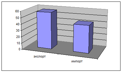 Из приведенной таблицы можно сделать следующие выводы: общая сумма экспортно-импортных операций ОАО «Кожевенный завод Гатово» за 2003г. составляет 6000 тыс. долл. США (Приложение В), из этой суммы на долю импортных операций приходится 42,5%, а на долю экспортных операций приходится 57,5% (рис. 2.1).