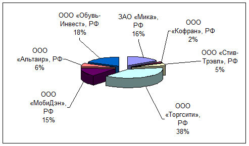 Рис. 2.6. Покупатели кожи хромовой в 2003г.