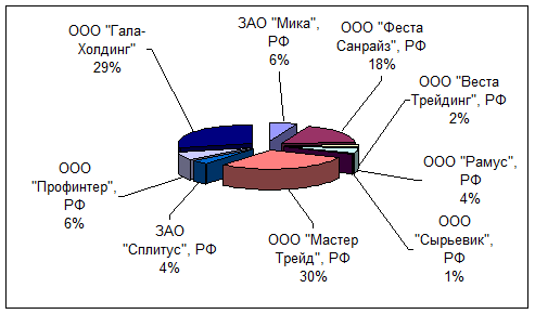 Рис. 2.9. Поставщики химматериалов в 2003г.