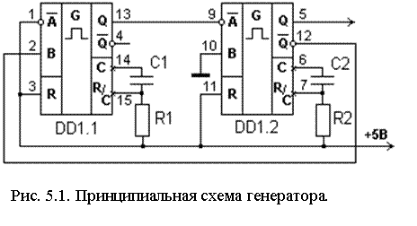 Генератор тактовых импульсов на ИМС DD1 К555АГ3. Принципиальная схема генератора приведена на рис.5.1. Период колебаний импульсов получаемых с автогенератора Т = 1 мс.