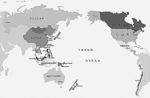 На протяжении всего ХХ в. Тихий океан был ареной политической и экономической борьбы крупнейших мировых держав. Здесь разворачивалось 70-летнее противостояние капиталистической и социалистической систем (в основном СССР и США), здесь во второй половине столетия происходил экономический взлет Японии, новых индустриальных стран и Китая.