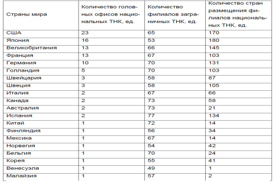 Особенности географического размещения ТНК в мире