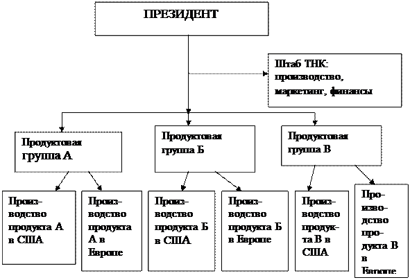 Для ТНК, выпускающей продукцию высоко дифференцированной группы характерная организация национально ориентированной фирмы по продуктовому признаку.