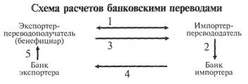 После заключения контракта (1) между импортером и экспортером импортер направляет в банк заявление на перевод (2). Поставка товара (3) может предшествовать платежу или последовать за ним, что определяется условиями контракта и валютным законодательством стран.