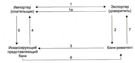 8. Экспортер заключает контракт с импортером о продаже товаров на условиях расчетов по документарному инкассо и отправляет ему товар (1а).