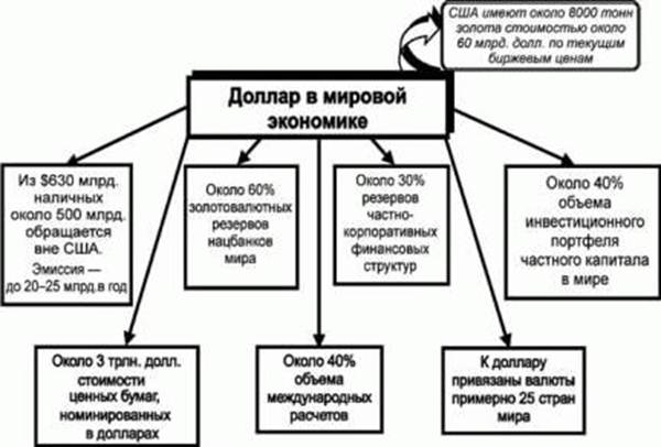 Такова ситуация с ролью доллара в сегодняшней мировой экономике. И вот почему вопрос о крахе, кризисе или даже о незначительной девальвации доллара оказывается столь важным, столь серьезным предметом обсуждения не только в США, но и во всем мире.