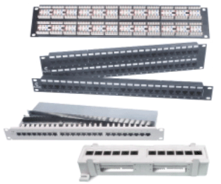 Пэтч-панели (или панели переключения) предназначены для обеспечения гибких соединений между горизонтальными или магистральными кабелями и портами активного оборудования в телекоммуникационных шкафах. Пэтч-панели имеют модульные гнезда, аналогичные гнездам телекоммуникационных розеток или активного оборудования. В качестве портов активного оборудования ЛВС наиболее часто используются 8 -позиционные модульные гнезда, поэтому удобно соединять порт активного оборудования и порт пэтч-панели с помощью модульного аппаратного шнура (или пэтч-корда).