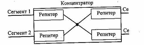 Служат для объединения в единую сеть несколько сегментов сети. Концентраторы можно разделить на активные и пассивные. Пассивные (или репитерные) концентраторы представляют собой собранные в едином конструктиве несколько репитеров. Они выполняют те же функции, что и репитеры.