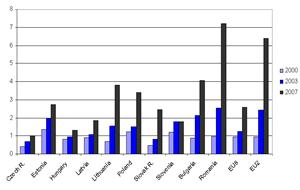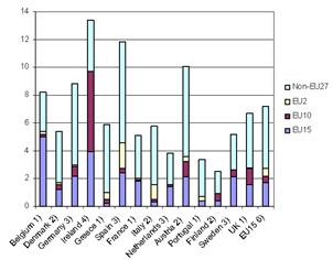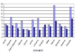 График 1. Уровень безработицы в новых странах-членах Источник: Brücker and Damelang, 2009