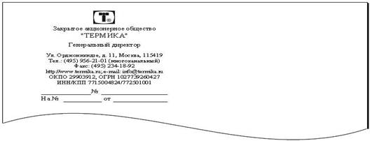 Рис. 2. Бланк письма генерального директора с угловым расположением реквизитов