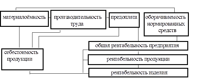 Рентабельность является результатом производственного процесса, она формируется под влиянием факторов, связанных с повышением эффективности оборотных средств, снижением себестоимости и повышением рентабельности продукции и отдельных изделий. Общую рентабельность предприятия необходимо рассматривать как функцию ряда количественных показателей – факторов: структуры и фондоотдачи основных производственных фондов, оборачиваемости нормируемых оборотных средств, рентабельности реализованной продукции (см. схему 2).