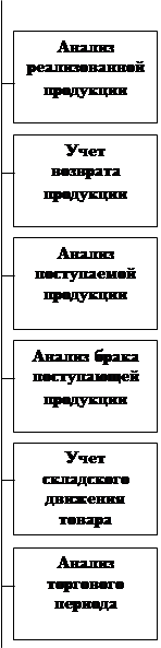 - по подсистеме «Учет движения товара»: (товаровед) учет реализованной продукции, учет возврата продукции; учет поступаемой продукции; учет брака в поступающей продукции, а так же совместный со складом учет движения товара на складе;открытие и закрытие торгового дня.