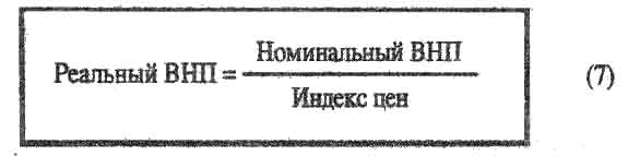 Различают номинальный и реальный ВНП. Номинальный ВНП характеризует объем продукции в данном году. Реальный ВНП измеряет объем продукции в данном году, выраженный в ценах базового года.