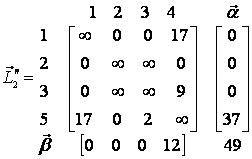 Рисунок 1.10 - Редуцированная матрица расстояний на 2 - м шаге алгоритма