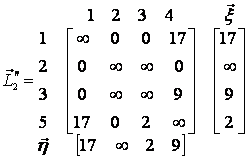 расстояний после вычеркивания 1 -й строки и 2 -го столбца имеет вид, приведенный на рис. 1.13.