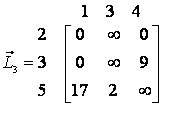 Рисунок 1.13 - Текущая матрица расстояний для 3-го шага алгоритма