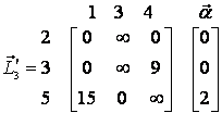 Рисунок 1.14 - Редуцированная по строкам матрица расстояний на 3 - м шаге алгоритма