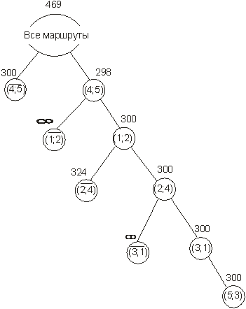 Построенный полный маршрут является оптимальным, если его длина не превосходит длины любого маршрута, соответствующего другим звеньям дерева, что и имеет место в данном примере. Он состоит из следующих звеньев или пар вершин