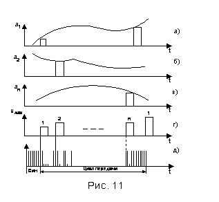 3. Временные диаграммы, поясняющие принцип образования группового сигнала в системе ВРК ИКМ приведены на рис. 11. Где:
