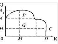 Проиллюстрируем это на графике (рис. 3). Если на данном поле затрачен капитал в 500 руб. (цифры условные), он принесет некоторое количество продукта. Несколько большее количество продукта будет получено, если затраты капитала составляют 510 руб. Разницу между этими двумя количествами можно рассматривать как продукт, полученный от затраты 510-го рубля; при допущении, что капитал вкладывается последовательными дозами в 10 руб., можно утверждать, что указанная разница между размерами продукта является продуктом, полученным от 510-й дозы. Пусть дозы представлены в последовательном порядке равными делениями по горизонтам OD. Проведем теперь от деления на этой горизонтали, представляющего 510-ю дозу M, линию МР под прямым углом к горизонтали OD, чтобы длина ее представляла количество продукта, полученного от 510-й дозы. Предположим, что это проделывается для каждого деления вплоть до деления, соответствующего последней дозе, вложение которого в землю считается выгодным. Пусть это будет 1100-е деление на D, а линия DC соответствует отдаче, которая составляет лишь вознаграждение фермера. Крайние точки указанных линий располагаются на кривой A PC. Весь продукт будет представлен площадью ODCA. Проведем СН параллельно DO, пересекающую РМ в точке G, тогда MG равна CD, а поскольку DC представляет лишь вознаграждение фермера за одну дозу, М представляет его вознаграждение за другую; и то же относится ко всем отрезкам линий, проведенных от OD и пересекающих НС. Поэтому площадь ОDСН представляет долю продукта, требующуюся для вознаграждения фермера, а остальная площадь А НСРА — это избыточный продукт, который при определенных условиях становится рентой, которую владелец земли вправе взыскать с арендатора за пользование ею.