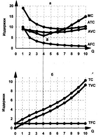 Рис.4. Взаимосвязь общих, средних и предельных издержек производства.5
