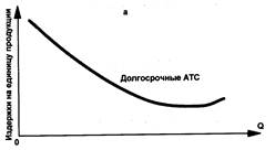 Из рис. 12В видно, что кривая долгосрочных АТС сначала стремительно падает, затем темп падения замедляется и она плавно снижается с увеличением объёма выпуска. Средние издержки приближаются к постоянным. Такие кривые называются ещё L-образными кривыми.