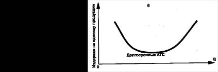 Если же положительный эффект масштаба по временной продолжительности является относительно небольшим (рис. 12Б) и быстро сменяется отрицательным эффектом, то эффективнее других будут выглядеть небольшие фирмы, ибо они в состоянии оперативно вносить необходимые коррективы в свою хозяйственную политику. Значителен удельный вес производства малых фирм в сельскохозяйственной отрасли, сфере услуг и некоторых отраслях лёгкой промышленности.