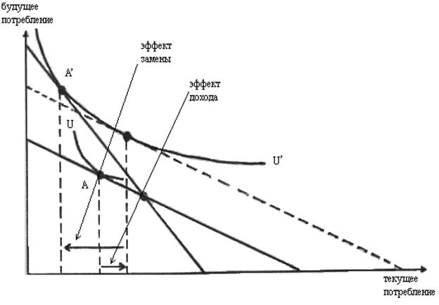 Эффект дохода и эффект замены при изменении процентной ставки.