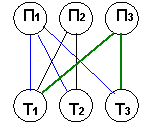 поставщик П2 — товары Т1 и Т2, поставщик Пз — товары Т1 и Тз.