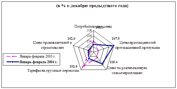 Динамика цен в январе-феврале 2004 года в отдельных секторах экономики