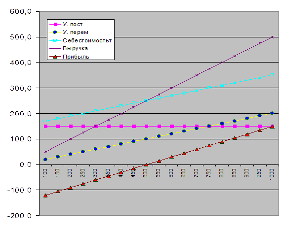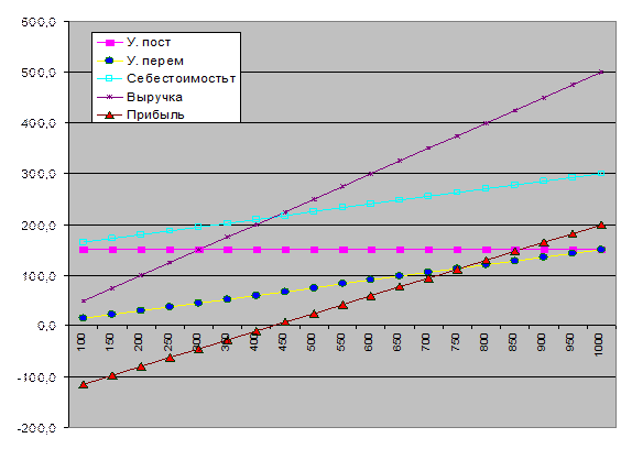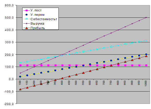 Как только будет продано количество единиц продукции достаточное для того, что бы возместить полную себестоимость, каждая дополнительно проданная единица продукции будет приносить дополнительную прибыль (как разница между суммой выручки и себестоимостью). При этом величина прироста этой прибыли зависит от соотношения У. пост и У. пер. затрат в структуре себестоимости.