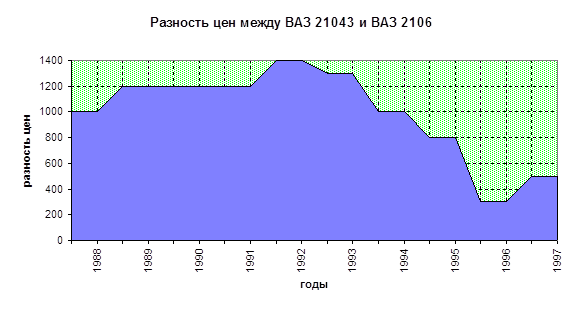 Диаграмма иллюстрирует цены на новые ВАЗ 1997 года выпуска.