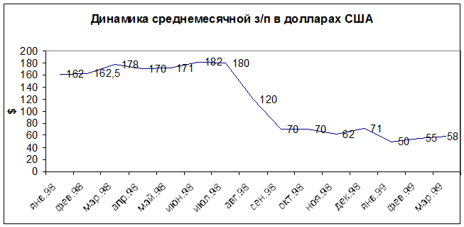 По данным московского фонда общественного мнения, августовский кризис на конец 1999 года смогли преодолеть лишь 18% населения России. (См. диаграмму 2) Заработная плата в результате кризиса уменьшилась примерно в 3 раза. (См. диаграмму 3) Из этих данных можно сделать вывод, что основной удар кризиса пришелся по населению страны.