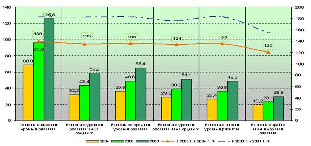 Средневзвешенный объем розничной торговли на душу населения, тыс. руб. и темпы его роста