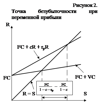Тогда для точки безубыточности Rb с прибылью выручка составит сумму издержек и прибыли: