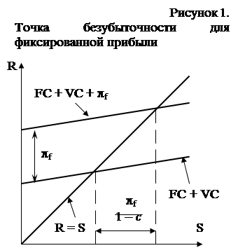 Точка безубыточности Rb рассчитываемая из необходимости покрытия всех издержек и получения планируемой прибыли, называется точкой плановой прибыли Rπ (profit planning).