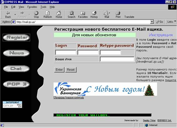 Почтовые порталы УкраиныРефераты >> Коммуникации и связь >> Почтовые порталы Украины