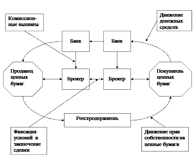 Рисунок 3. Схематичное изображение работы вторичного рынка ценных бумаг.