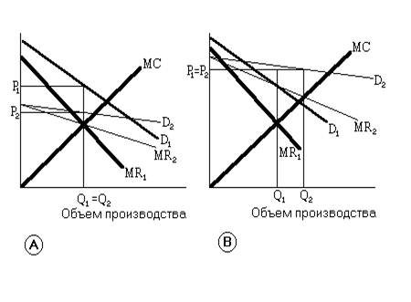 Рис.2а Зависимость цены от изменения спроса при том же объеме производства Рис.2в Изменение спроса при переменном объеме производства и постоянной цене |