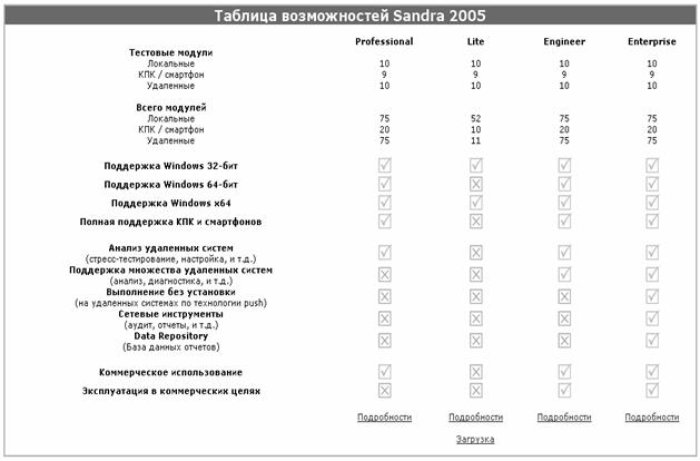 Рисунок 4.2 -Версии утилиты SiSoftware Sandra