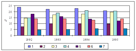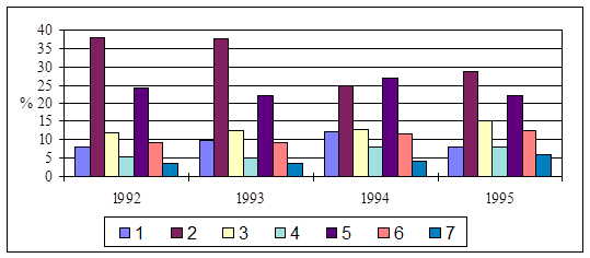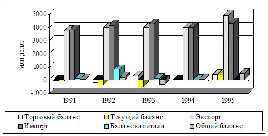 В прошедшем 1995г. были отмечены признаки стабилизации платежного баланса (см.рис.4-1)