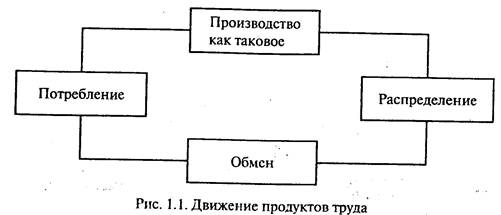 Экономические блага совершают движение по такому кругу: производство — распределение — обмен — потребление. Эта последовательность наглядно представлена на рис. 1.1.