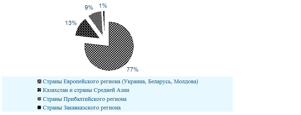Географическая структура товарооборота России с новыми независимыми государствами сложилась следующим образом: