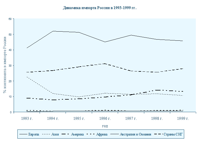 Импорт из Австралии и Океании на протяжении1994-1999 годов не изменялся, находился на отметке 0,6 %.