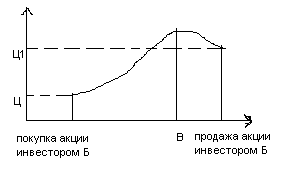 Если инвестиционный период не включает выплаты дивидендов, то доход образуется кака разница между ценой покупки и продажи. Таким образом, Д=Ц1-Ц и может быть любой величиной – положительной (для инвестора В), отрицательной (для инвестора Г) и нулевой (для инвестора Д). Графически это можно изобразить следующим образом (рис.3):
