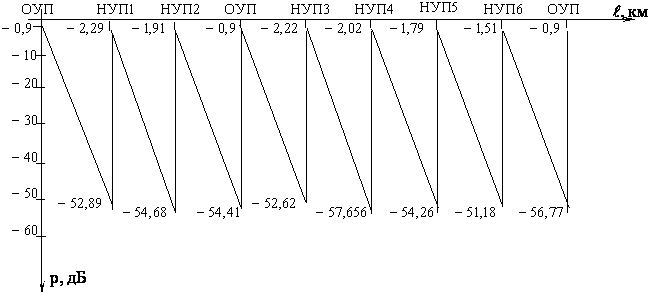 1.3.1 Расчёт уровней на входе и выходе усилительных пунктов