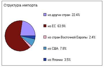 Таким образом, преобладающими в структуре импорта являются автомобили, транспортное оборудование и другие промышленные товары. Главными партнерами Франции в рамках ЕС являются Германия (18.9%),Бельгия(10,7%), и Италия (8.3%). За пределами Европы крупный торговый партнер – США.